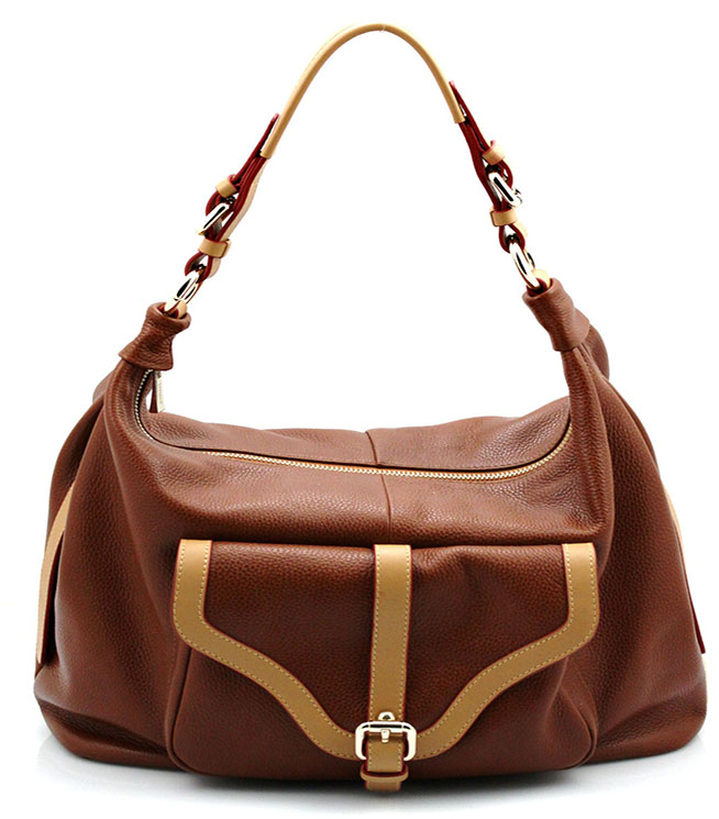 - Genuine pebble leather with smooth luggage banded trim